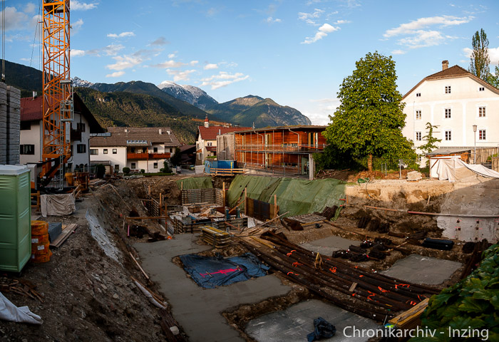 27. Mai 2013 - Die Schalung für die Kellerwände wird aufgerichtet.